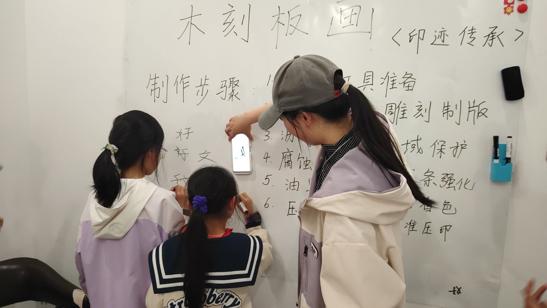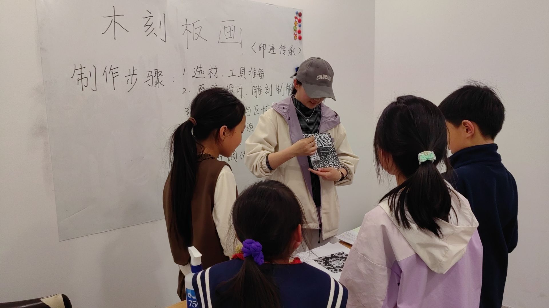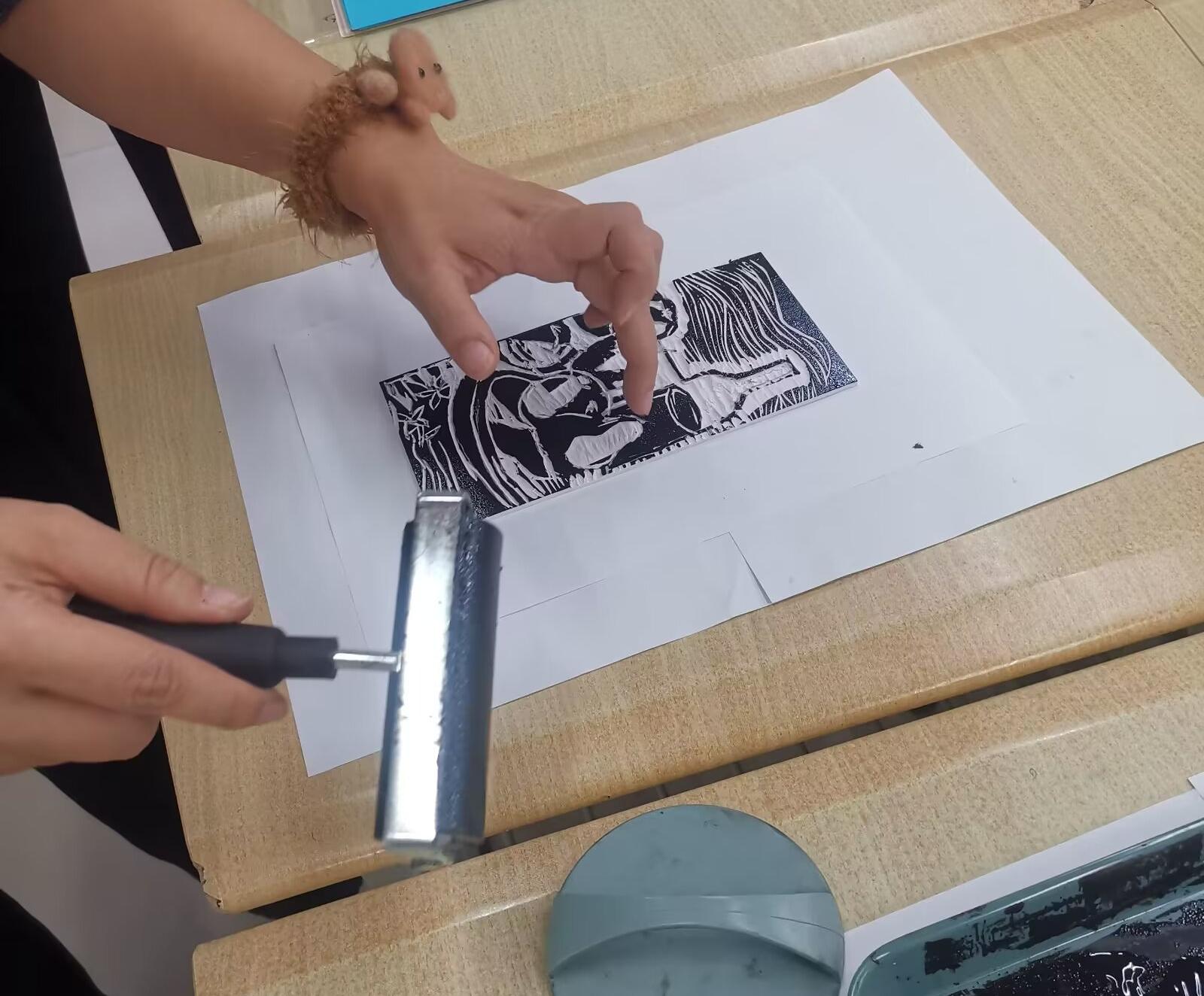印迹传承工作室的老师以“版画:印痕中的文明密码”为题,带孩子们穿越时空——从唐代雕版印刷到明清年画,从《门神》的祥瑞寓意到现代城市风光主题创作,每一刀刻痕都是与历史的对话。孩子们瞪大眼睛,惊叹于“原来一张木板也能讲故事!”