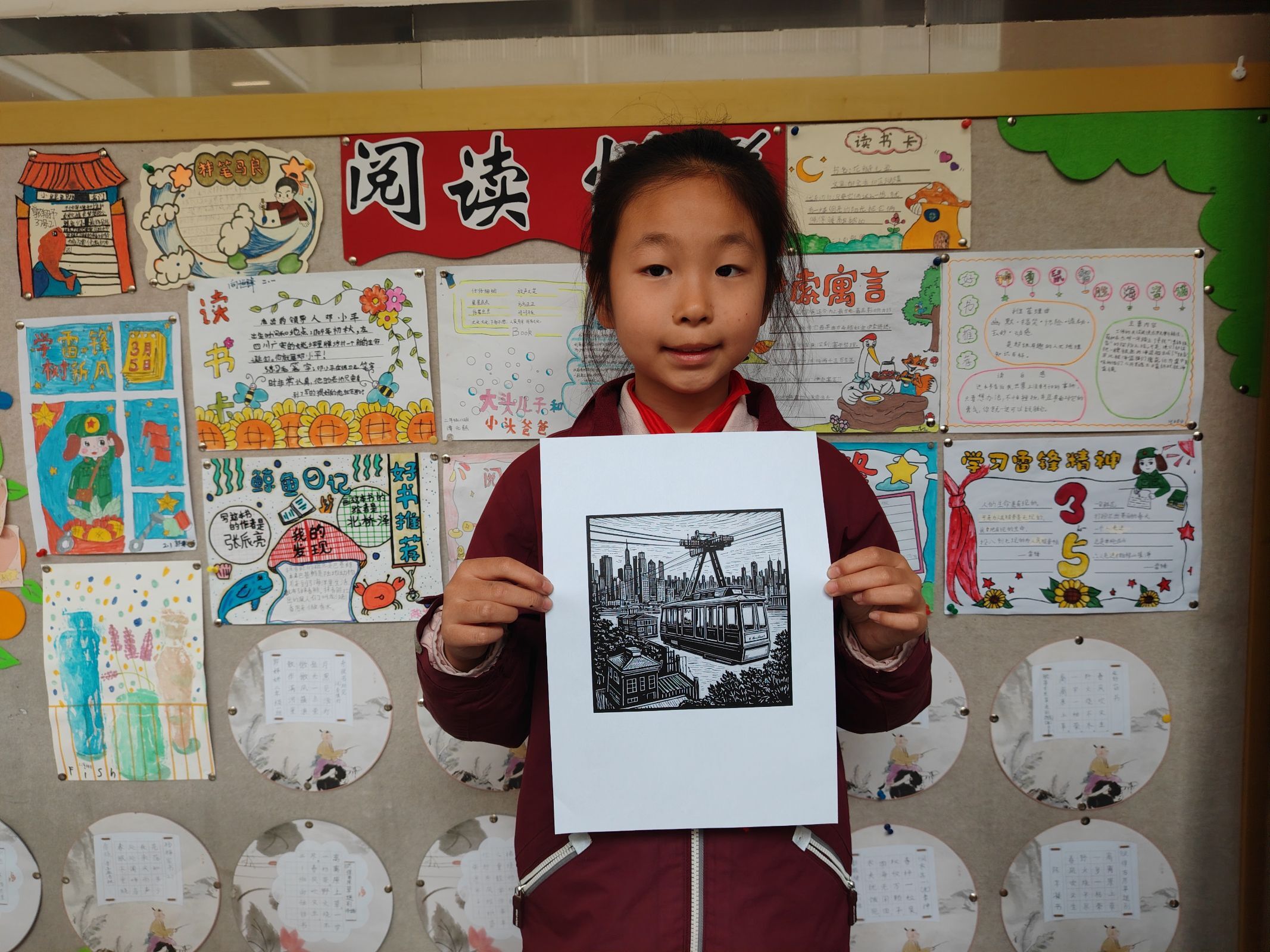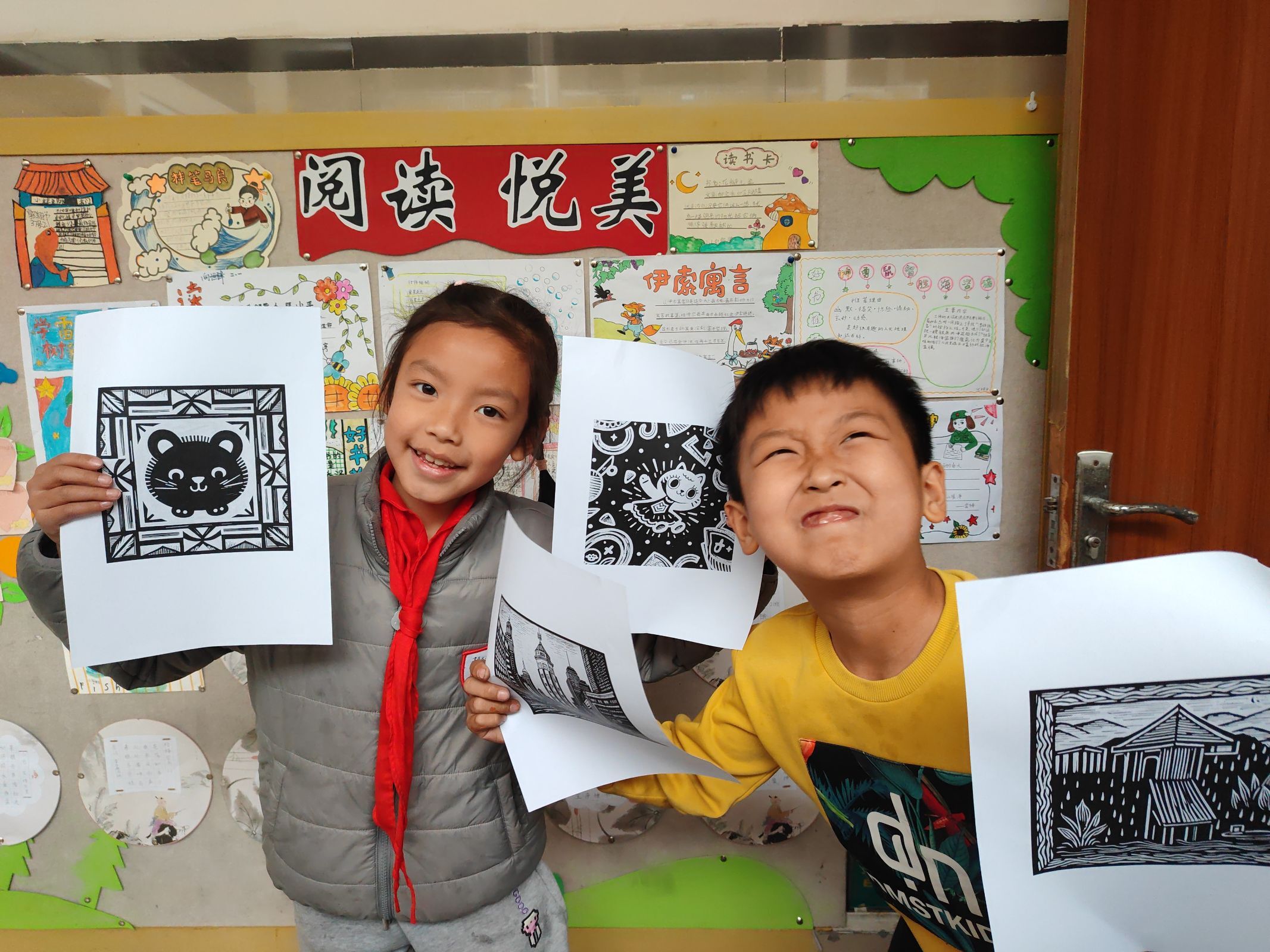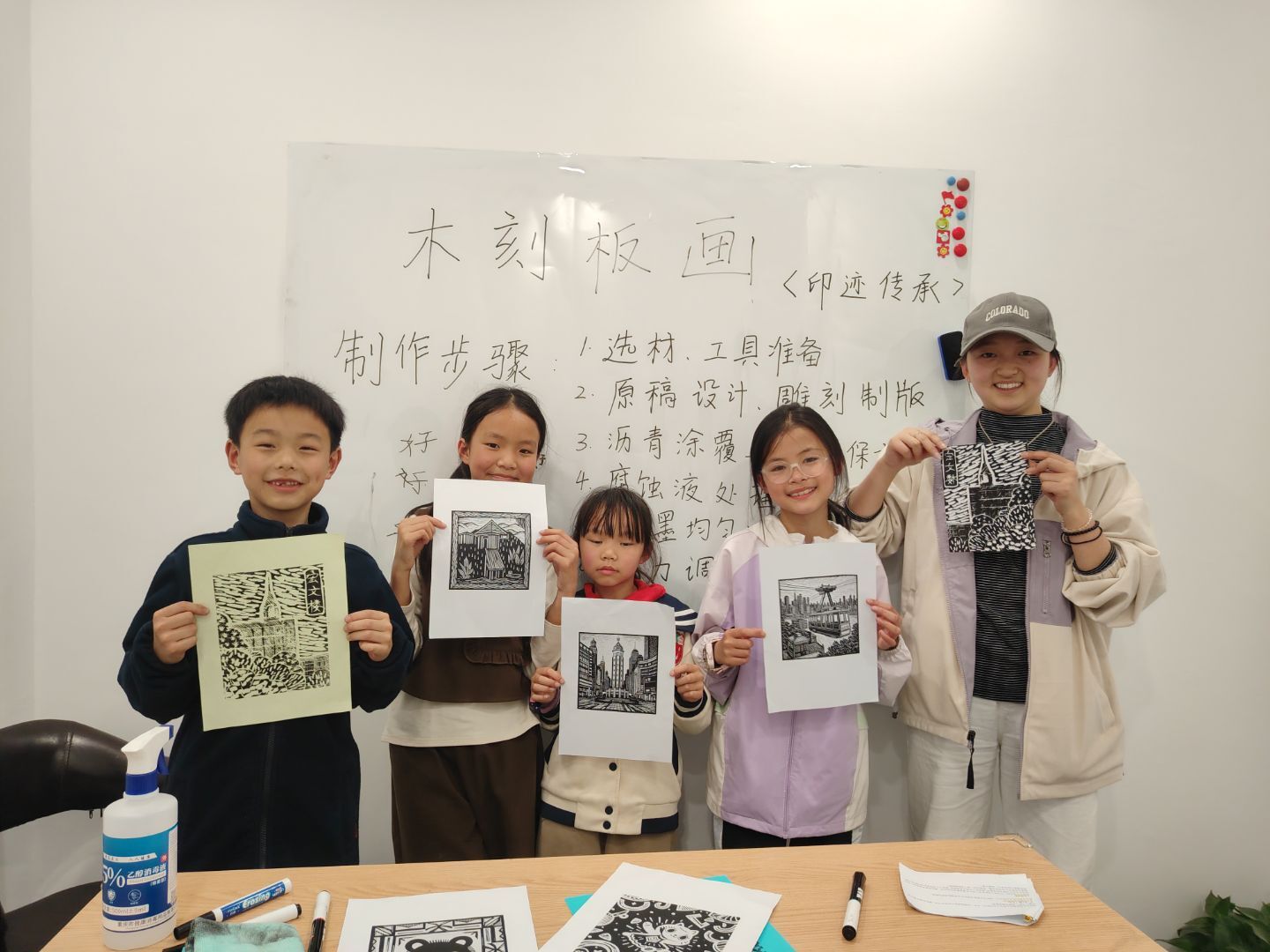 一幅幅版画作品被孩子们展示,从传统的印象作品到抽象的动物植物,多元的创作展现了传统与现代的碰撞。未来印迹传承工作室将继续走进更多社区与学校,开设系列课程,让木刻版画成为连接过去与未来的文化桥梁!